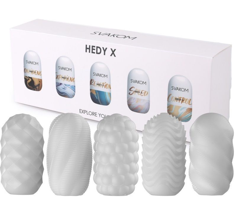 Hedy X представляет собой коллекцию из 5 мастурбаторов, каждый из которых разработан с уникальным рельефом для максимального комфорта и удовольствия. Откройте упаковку, добавьте лубрикант и побалуйте себя. Совершенно новые текстуры, которые выведут вас на новый уровень. К каждому изделию прилагается специальный пакетик с лубрикантом.
