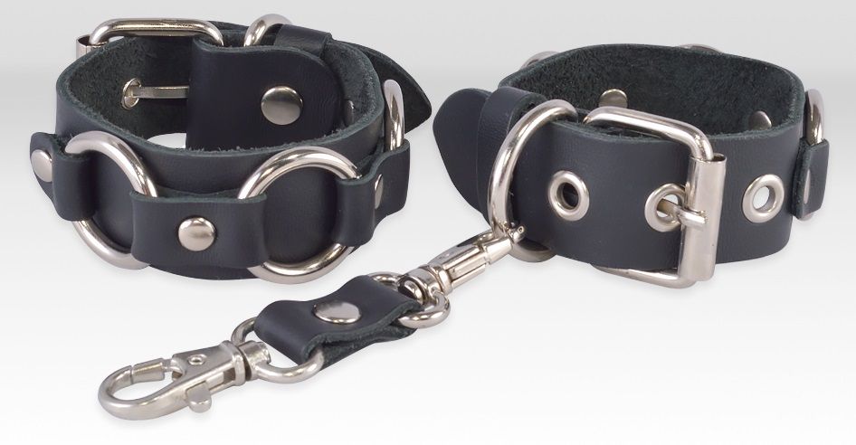 Наручники из натуральной кожи не оставят равнодушными любителей поэкспериментировать и позволят доминанту почувствовать истинную власть над партнером. Стиль задает строгий цвет в сочетании с металлической фурнитурой. Украшены кольцами и клепками. Пряжка поможет комфортно зафиксировать наручники на запястьях. Размер универсальный. Ширина наручников - 2,5 см.