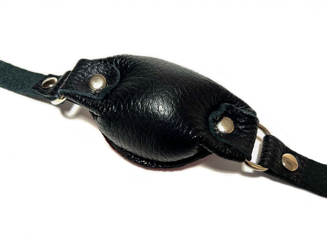 Качественный и удобный кляп, выполненный из натуральной кожи черного и красного цветов. Благодаря наполнителю средней жесткости этот кляп будет комфортен в использовании. Аксессуар декорирован сварной металлической фурнитурой. Обхват удобно регулируется с помощью металлической пряжки. Отличный аксессуар для любовной игры и новых ощущений! Размер кляпа - 9х5 см. Ширина ремешков - 1,8 см.