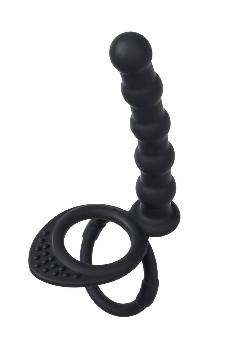 Рельефная насадка на пенис для двойного проникновения – это отличный выбор для любителей продвинутых сексуальных развлечений без участия третьих лиц. Насадка надежно фиксируется на теле двумя кольцами, которые плотно обхватывают ствол пениса и мошонку. Это оказывает дополнительный эффект для продления полового акта, а партнер в это время получает в два раза больше удовольствия, что ускоряет приближение оргазма. Шарики на стволе насадки придают пикантности проникновению. Пять анальных бусин стимулируют чувствительный сфинктер, усиливая наслаждение принимающего партнера. Материал насадки – гипоаллергенный медицинский силикон. Рабочая длина - 12,5 см. Диаметр колец - 3,7 и 4,5 см.